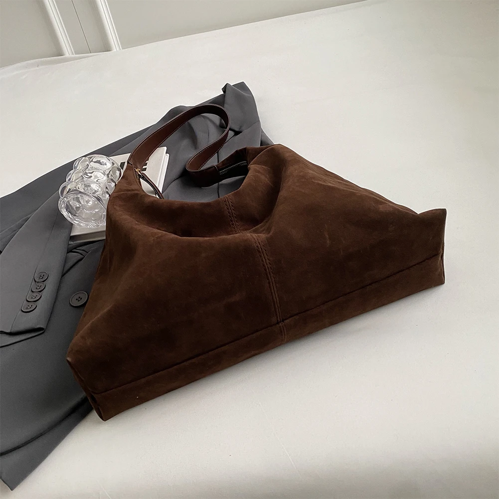 Women Suede Tote Bag with Zipper Shoulder Bag PU Leather Large Capacity Hobo Bag Solid Slouchy Bag Commuter Travel Bag