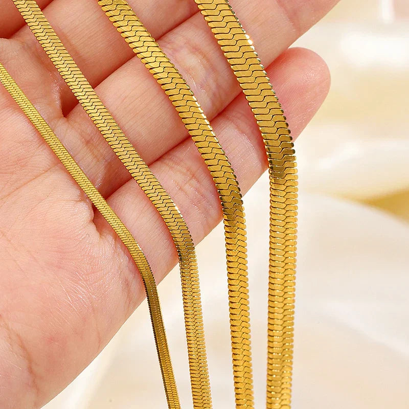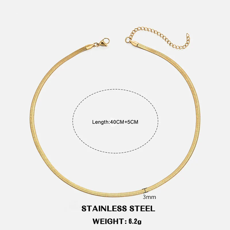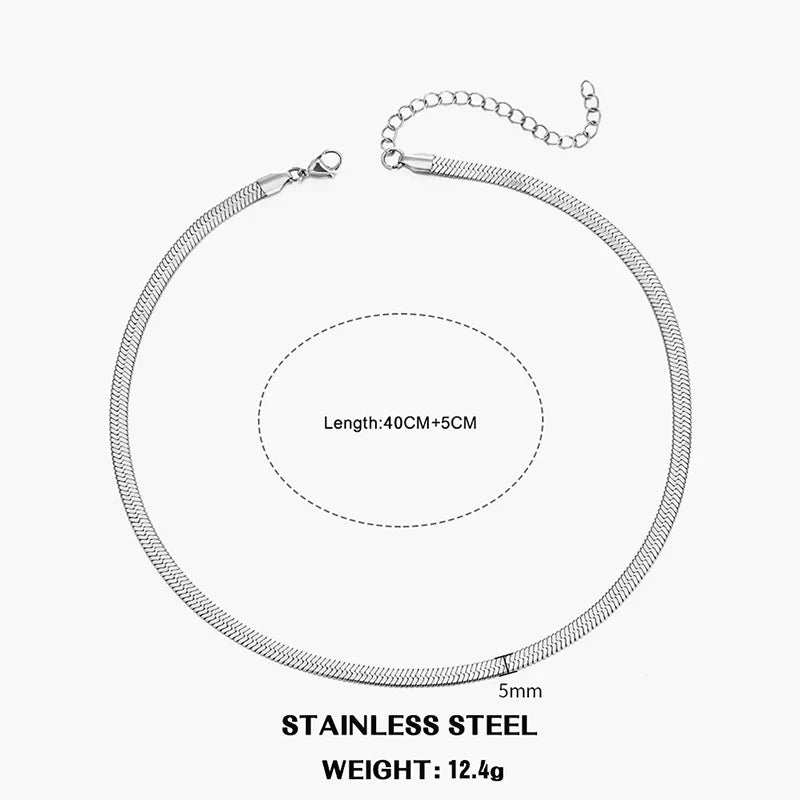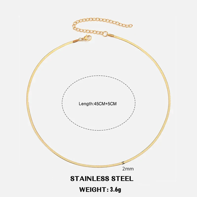 Hot Classic Unisex Flat Snake Chain Choker Necklace For Women Stainless Steel Herringbone Gold Silver Color Fashion Jewelry Gift