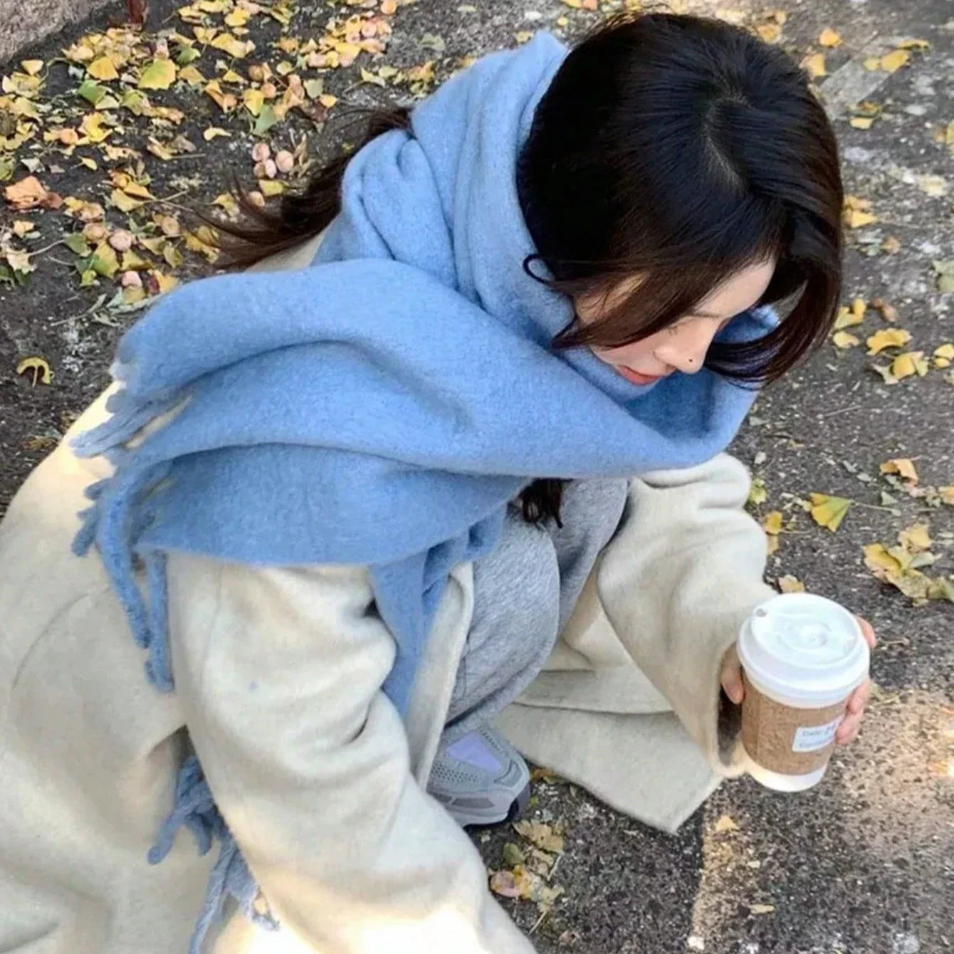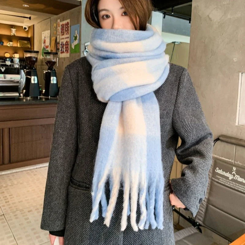 1pc womens autumn winter Blue Plaid