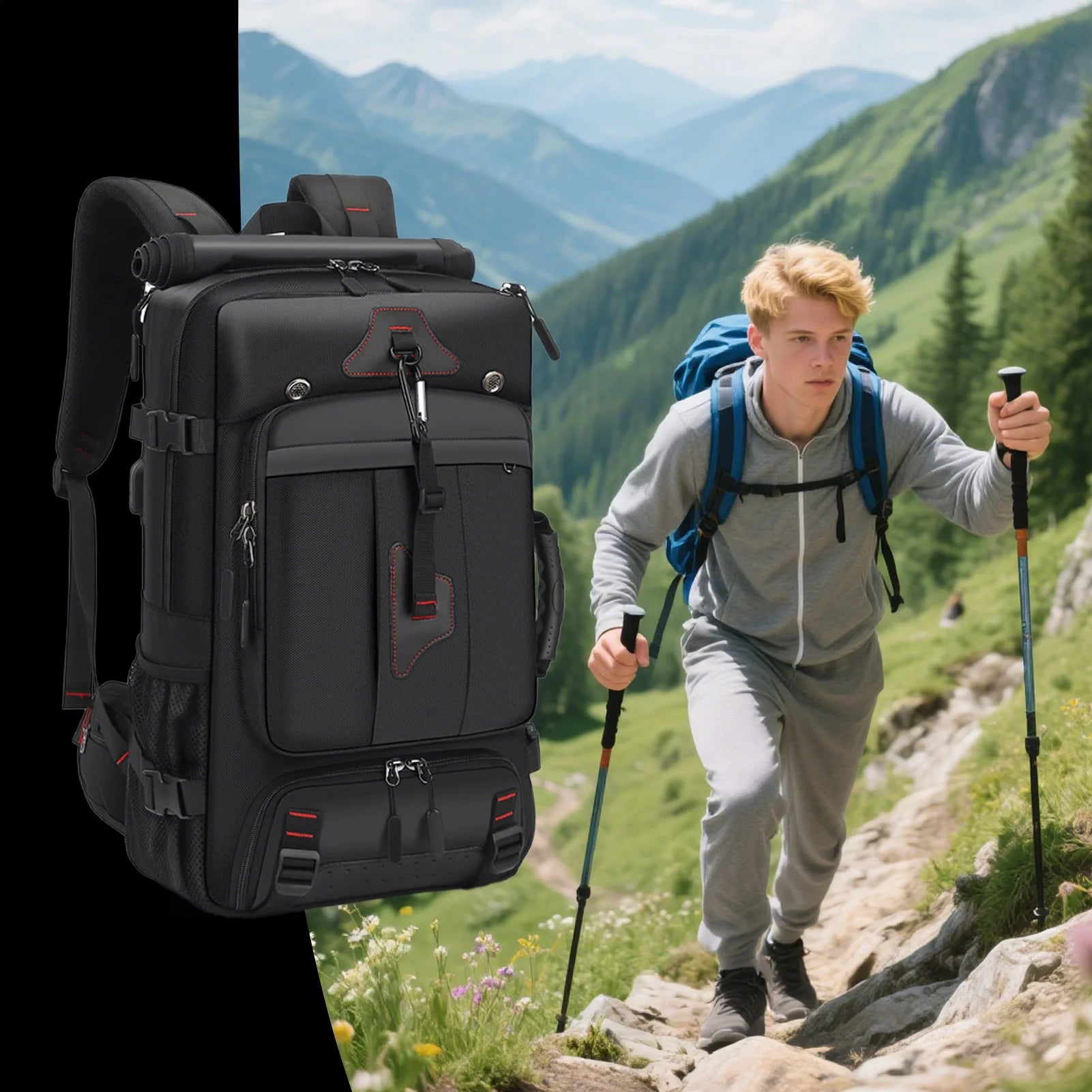 60 80L Travel Backpack Large Pro ist speziell für Camping und Outdoor konzipiert. Die robuste Bauweise sorgt für Zuverlässigkeit bei verschiedensten Bedingungen. Das Produkt lässt sich leicht transportieren und effizient einsetzen. Es eignet sich ideal für Reisen, mobile Nutzung und längere Aufenthalte im Freien. Die Konstruktion unterstützt eine lange Lebensdauer auch bei häufiger Anwendung. Es bietet dir praktische Vorteile in Alltagssituationen beim Campen. Technische Daten: - Size: 80L - Material: 600D Origin - Weight: durability and expandable storage. Perfect for travel, hiking, or beach outings, its spacious design supports gym, school, and business needs. Breathable materials and anti-theft functionality enhance comfort and security during any trip. - Capacity: 35L ,60L, 80L - Color: slightly different from the picture.
