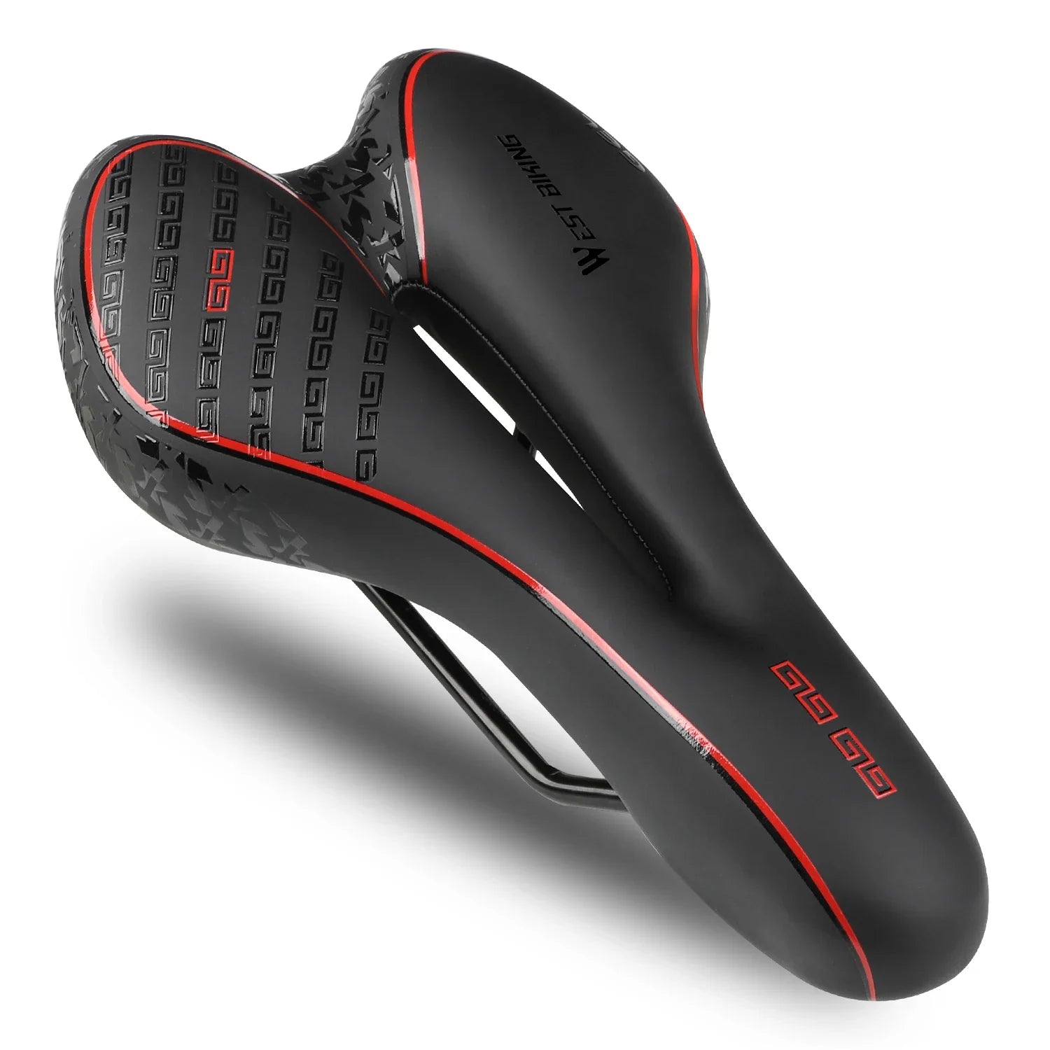 Der Einsatz von hochdichtem Memory-Schaumstoff sorgt dafür, dass der gesamte Sitzbereich optimal gepolstert ist. Federnde Gummibälle im unteren Bereich des Sattels bieten eine starke Stoßdämpfung und verbessern den Schutz gegen Stöße und Unebenheiten. Das hohle Design erhöht die Atmungsaktivität und absorbiert Aufprälle, Schlaglöcher und schwieriges Gelände, um Ihnen eine angenehme Fahrt zu ermöglichen.
